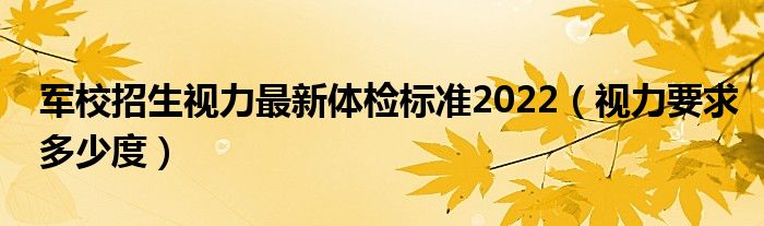 大家好,小高來為大家解答以上問題。軍校招生視力最新體檢標(biāo)準(zhǔn)2022,視力要求多少度很多人還不知道,現(xiàn)在讓我們一起來看看吧!