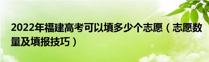 大家好,小高來為大家解答以上問題。2022年福建高考可以填多少個(gè)志愿,志愿數(shù)量及填報(bào)技巧很多人還不知道,現(xiàn)在讓我們一起來看看吧!