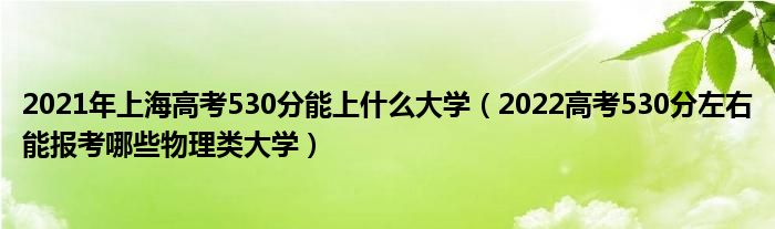 大家好,小高來為大家解答以上問題。2021年上海高考530分能上什么大學(xué),2022高考530分左右能報考哪些物理類大學(xué)很多人還不知道,現(xiàn)在讓我們一起來看看吧!