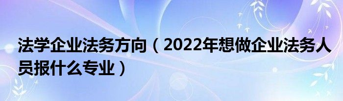 大家好,小高來(lái)為大家解答以上問(wèn)題。法學(xué)企業(yè)法務(wù)方向,2022年想做企業(yè)法務(wù)人員報(bào)什么專(zhuān)業(yè)很多人還不知道,現(xiàn)在讓我們一起來(lái)看看吧!