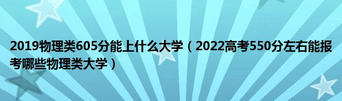 大家好,小高來(lái)為大家解答以上問(wèn)題。2019物理類605分能上什么大學(xué),2022高考550分左右能報(bào)考哪些物理類大學(xué)很多人還不知道,現(xiàn)在讓我們一起來(lái)看看吧!