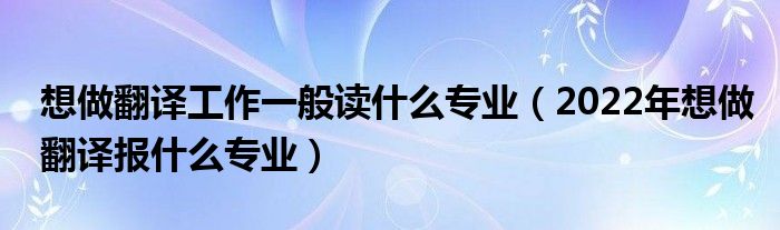 大家好,小高來(lái)為大家解答以上問(wèn)題。想做翻譯工作一般讀什么專(zhuān)業(yè),2022年想做翻譯報(bào)什么專(zhuān)業(yè)很多人還不知道,現(xiàn)在讓我們一起來(lái)看看吧!