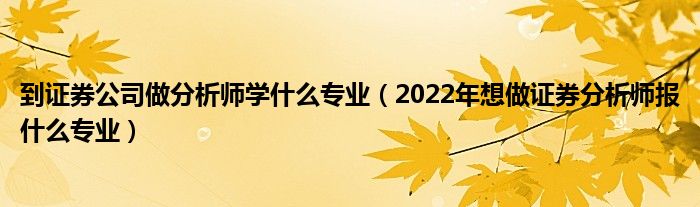 大家好,小高來為大家解答以上問題。到證券公司做分析師學(xué)什么專業(yè),2022年想做證券分析師報(bào)什么專業(yè)很多人還不知道,現(xiàn)在讓我們一起來看看吧!