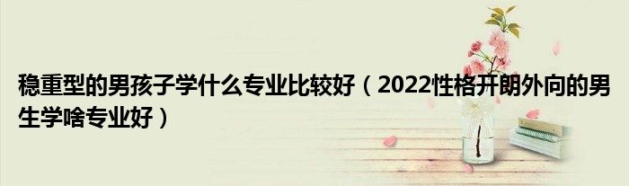 大家好,小高來為大家解答以上問題。穩(wěn)重型的男孩子學什么專業(yè)比較好,2022性格開朗外向的男生學啥專業(yè)好很多人還不知道,現(xiàn)在讓我們一起來看看吧!