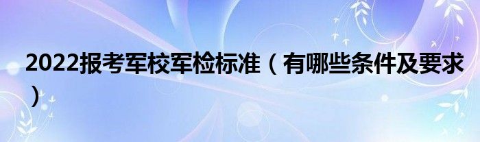 大家好,小高來(lái)為大家解答以上問(wèn)題。2022報(bào)考軍校軍檢標(biāo)準(zhǔn),有哪些條件及要求很多人還不知道,現(xiàn)在讓我們一起來(lái)看看吧!