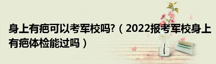 大家好,小高來為大家解答以上問題。身上有疤可以考軍校嗎?,2022報考軍校身上有疤體檢能過嗎很多人還不知道,現(xiàn)在讓我們一起來看看吧!