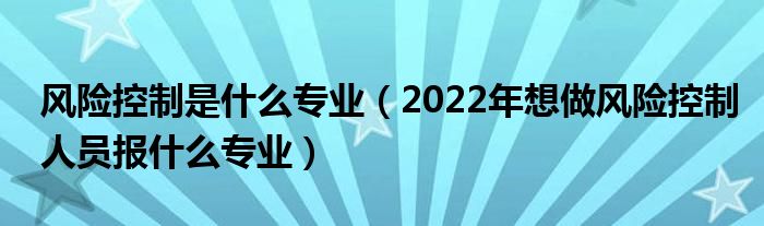 大家好,小高來為大家解答以上問題。風(fēng)險控制是什么專業(yè),2022年想做風(fēng)險控制人員報什么專業(yè)很多人還不知道,現(xiàn)在讓我們一起來看看吧!