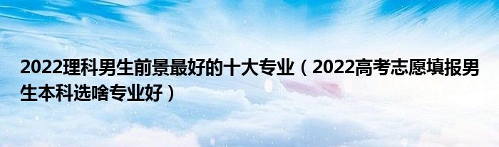 大家好,小高來(lái)為大家解答以上問(wèn)題。2022理科男生前景最好的十大專業(yè),2022高考志愿填報(bào)男生本科選啥專業(yè)好很多人還不知道,現(xiàn)在讓我們一起來(lái)看看吧!