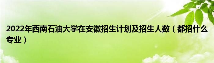 大家好,小高來為大家解答以上問題。2022年西南石油大學在安徽招生計劃及招生人數(shù),都招什么專業(yè)很多人還不知道,現(xiàn)在讓我們一起來看看吧!