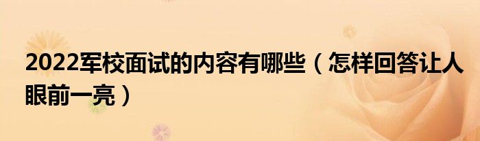 大家好,小高來(lái)為大家解答以上問(wèn)題。2022軍校面試的內(nèi)容有哪些,怎樣回答讓人眼前一亮很多人還不知道,現(xiàn)在讓我們一起來(lái)看看吧!