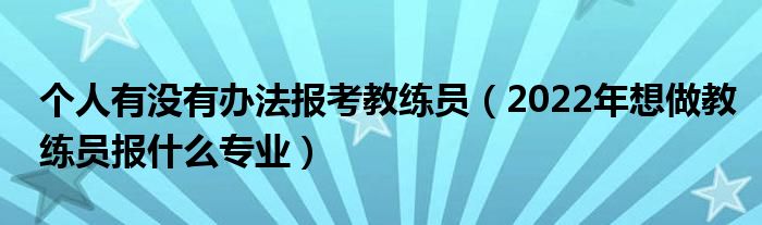 大家好,小高來為大家解答以上問題。個(gè)人有沒有辦法報(bào)考教練員,2022年想做教練員報(bào)什么專業(yè)很多人還不知道,現(xiàn)在讓我們一起來看看吧!
