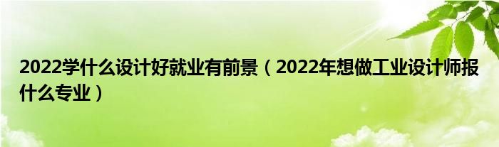 大家好,小高來為大家解答以上問題。2022學(xué)什么設(shè)計(jì)好就業(yè)有前景,2022年想做工業(yè)設(shè)計(jì)師報(bào)什么專業(yè)很多人還不知道,現(xiàn)在讓我們一起來看看吧!