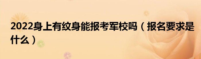 大家好,小高來(lái)為大家解答以上問(wèn)題。2022身上有紋身能報(bào)考軍校嗎,報(bào)名要求是什么很多人還不知道,現(xiàn)在讓我們一起來(lái)看看吧!