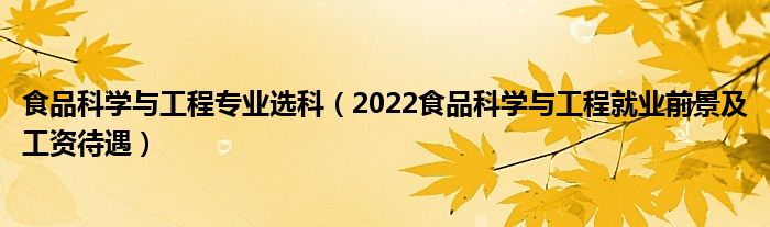 大家好,小高來(lái)為大家解答以上問(wèn)題。食品科學(xué)與工程專(zhuān)業(yè)選科,2022食品科學(xué)與工程就業(yè)前景及工資待遇很多人還不知道,現(xiàn)在讓我們一起來(lái)看看吧!