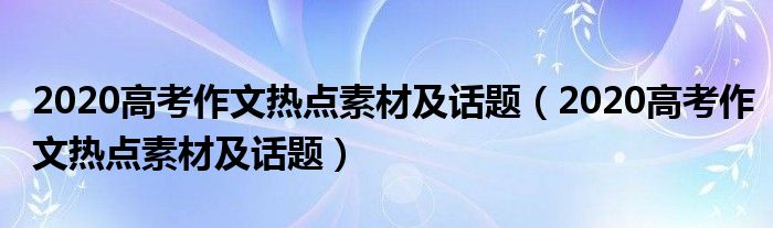 大家好,小高來為大家解答以上問題。2020高考作文熱點(diǎn)素材及話題,2020高考作文熱點(diǎn)素材及話題很多人還不知道,現(xiàn)在讓我們一起來看看吧!