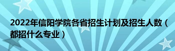 大家好,小高來為大家解答以上問題。2022年信陽學(xué)院各省招生計劃及招生人數(shù),都招什么專業(yè)很多人還不知道,現(xiàn)在讓我們一起來看看吧!