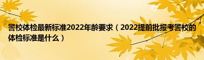 大家好,小高來為大家解答以上問題。警校體檢最新標(biāo)準(zhǔn)2022年齡要求,2022提前批報考警校的體檢標(biāo)準(zhǔn)是什么很多人還不知道,現(xiàn)在讓我們一起來看看吧!