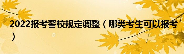 大家好,小高來為大家解答以上問題。2022報(bào)考警校規(guī)定調(diào)整,哪類考生可以報(bào)考很多人還不知道,現(xiàn)在讓我們一起來看看吧!