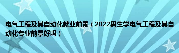 大家好,小高來為大家解答以上問題。電氣工程及其自動(dòng)化就業(yè)前景,2022男生學(xué)電氣工程及其自動(dòng)化專業(yè)前景好嗎很多人還不知道,現(xiàn)在讓我們一起來看看吧!