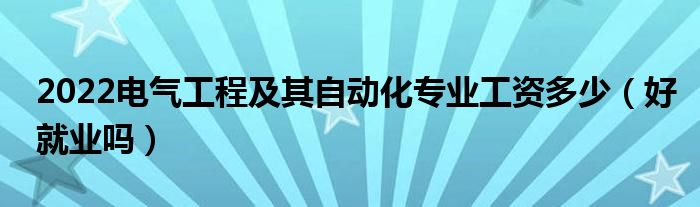 大家好,小高來(lái)為大家解答以上問(wèn)題。2022電氣工程及其自動(dòng)化專(zhuān)業(yè)工資多少,好就業(yè)嗎很多人還不知道,現(xiàn)在讓我們一起來(lái)看看吧!