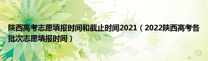大家好,小高來為大家解答以上問題。陜西高考志愿填報時間和截止時間2021,2022陜西高考各批次志愿填報時間很多人還不知道,現(xiàn)在讓我們一起來看看吧!