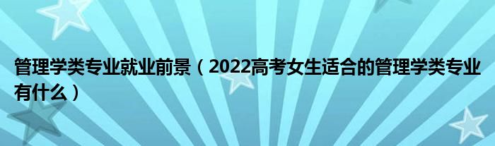大家好,小高來為大家解答以上問題。管理學(xué)類專業(yè)就業(yè)前景,2022高考女生適合的管理學(xué)類專業(yè)有什么很多人還不知道,現(xiàn)在讓我們一起來看看吧!