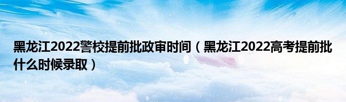 大家好,小高來為大家解答以上問題。黑龍江2022警校提前批政審時(shí)間,黑龍江2022高考提前批什么時(shí)候錄取很多人還不知道,現(xiàn)在讓我們一起來看看吧!