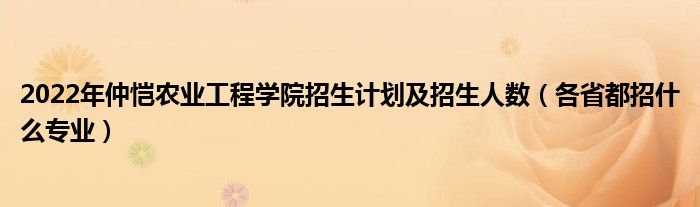 大家好,小高來(lái)為大家解答以上問(wèn)題。2022年仲愷農(nóng)業(yè)工程學(xué)院招生計(jì)劃及招生人數(shù),各省都招什么專(zhuān)業(yè)很多人還不知道,現(xiàn)在讓我們一起來(lái)看看吧!