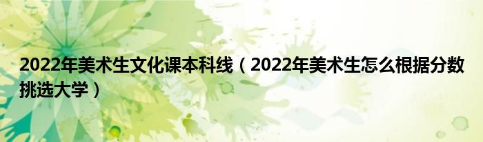 大家好,小高來為大家解答以上問題。2022年美術生文化課本科線,2022年美術生怎么根據(jù)分數(shù)挑選大學很多人還不知道,現(xiàn)在讓我們一起來看看吧!