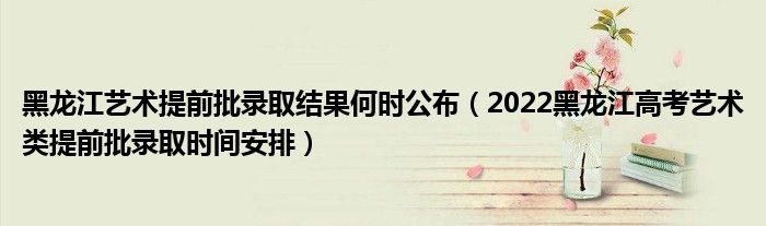 大家好,小高來(lái)為大家解答以上問(wèn)題。黑龍江藝術(shù)提前批錄取結(jié)果何時(shí)公布,2022黑龍江高考藝術(shù)類提前批錄取時(shí)間安排很多人還不知道,現(xiàn)在讓我們一起來(lái)看看吧!