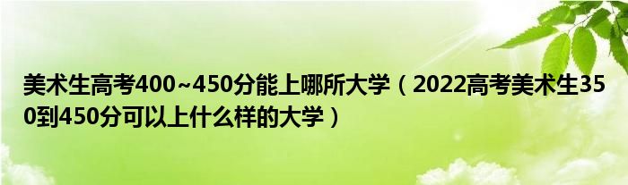 大家好,小高來為大家解答以上問題。美術(shù)生高考400~450分能上哪所大學(xué),2022高考美術(shù)生350到450分可以上什么樣的大學(xué)很多人還不知道,現(xiàn)在讓我們一起來看看吧!