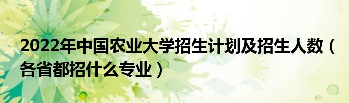 大家好,小高來為大家解答以上問題。2022年中國農業(yè)大學招生計劃及招生人數,各省都招什么專業(yè)很多人還不知道,現在讓我們一起來看看吧!