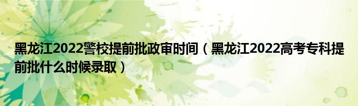 大家好,小高來(lái)為大家解答以上問(wèn)題。黑龍江2022警校提前批政審時(shí)間,黑龍江2022高考專科提前批什么時(shí)候錄取很多人還不知道,現(xiàn)在讓我們一起來(lái)看看吧!