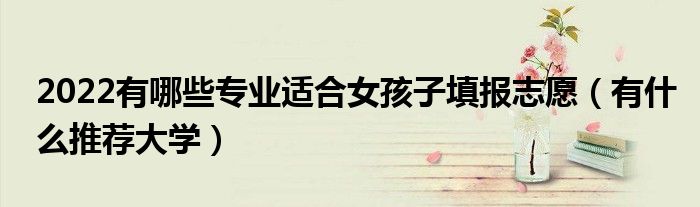 大家好,小高來為大家解答以上問題。2022有哪些專業(yè)適合女孩子填報(bào)志愿,有什么推薦大學(xué)很多人還不知道,現(xiàn)在讓我們一起來看看吧!
