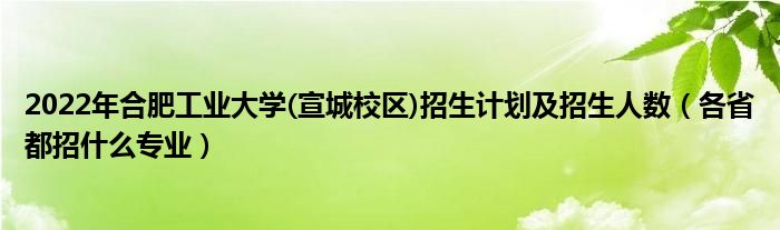 大家好,小高來(lái)為大家解答以上問(wèn)題。2022年合肥工業(yè)大學(xué)(宣城校區(qū))招生計(jì)劃及招生人數(shù),各省都招什么專業(yè)很多人還不知道,現(xiàn)在讓我們一起來(lái)看看吧!