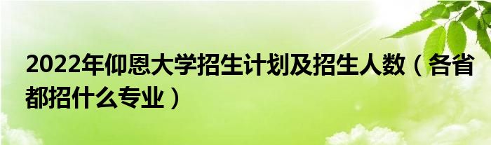 大家好,小高來為大家解答以上問題。2022年仰恩大學招生計劃及招生人數,各省都招什么專業(yè)很多人還不知道,現在讓我們一起來看看吧!