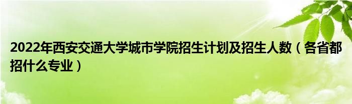 大家好,小高來為大家解答以上問題。2022年西安交通大學(xué)城市學(xué)院招生計(jì)劃及招生人數(shù),各省都招什么專業(yè)很多人還不知道,現(xiàn)在讓我們一起來看看吧!