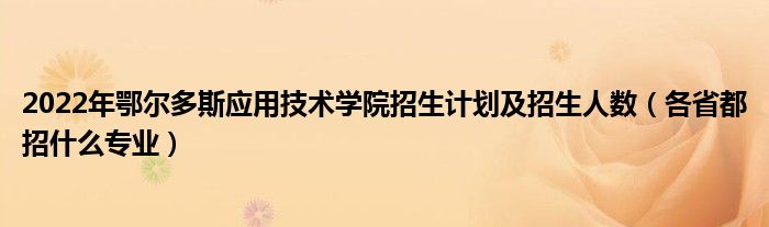 大家好,小高來為大家解答以上問題。2022年鄂爾多斯應用技術學院招生計劃及招生人數,各省都招什么專業(yè)很多人還不知道,現在讓我們一起來看看吧!
