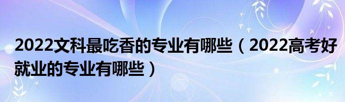 大家好,小高來為大家解答以上問題。2022文科最吃香的專業(yè)有哪些,2022高考好就業(yè)的專業(yè)有哪些很多人還不知道,現(xiàn)在讓我們一起來看看吧!