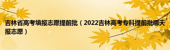大家好,小高來為大家解答以上問題。吉林省高考填報志愿提前批,2022吉林高考專科提前批哪天報志愿很多人還不知道,現(xiàn)在讓我們一起來看看吧!