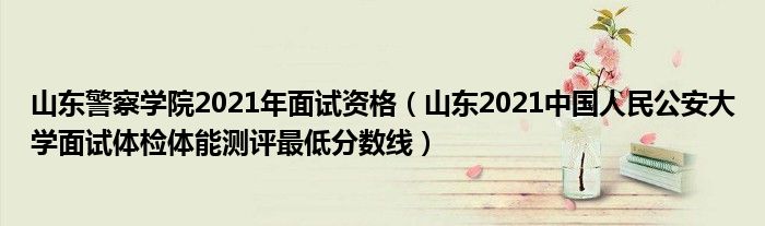 大家好,小高來(lái)為大家解答以上問(wèn)題。山東警察學(xué)院2021年面試資格,山東2021中國(guó)人民公安大學(xué)面試體檢體能測(cè)評(píng)最低分?jǐn)?shù)線(xiàn)很多人還不知道,現(xiàn)在讓我們一起來(lái)看看吧!