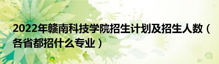 大家好,小高來為大家解答以上問題。2022年贛南科技學院招生計劃及招生人數(shù),各省都招什么專業(yè)很多人還不知道,現(xiàn)在讓我們一起來看看吧!