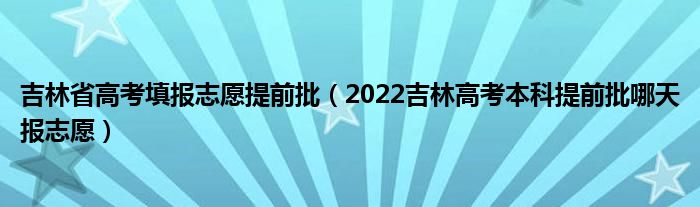大家好,小高來(lái)為大家解答以上問(wèn)題。吉林省高考填報(bào)志愿提前批,2022吉林高考本科提前批哪天報(bào)志愿很多人還不知道,現(xiàn)在讓我們一起來(lái)看看吧!