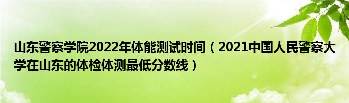 大家好,小高來(lái)為大家解答以上問(wèn)題。山東警察學(xué)院2022年體能測(cè)試時(shí)間,2021中國(guó)人民警察大學(xué)在山東的體檢體測(cè)最低分?jǐn)?shù)線很多人還不知道,現(xiàn)在讓我們一起來(lái)看看吧!