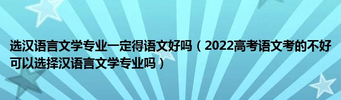 大家好,小高來為大家解答以上問題。選漢語言文學專業(yè)一定得語文好嗎,2022高考語文考的不好可以選擇漢語言文學專業(yè)嗎很多人還不知道,現(xiàn)在讓我們一起來看看吧!