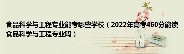 大家好,小高來為大家解答以上問題。食品科學(xué)與工程專業(yè)能考哪些學(xué)校,2022年高考460分能讀食品科學(xué)與工程專業(yè)嗎很多人還不知道,現(xiàn)在讓我們一起來看看吧!