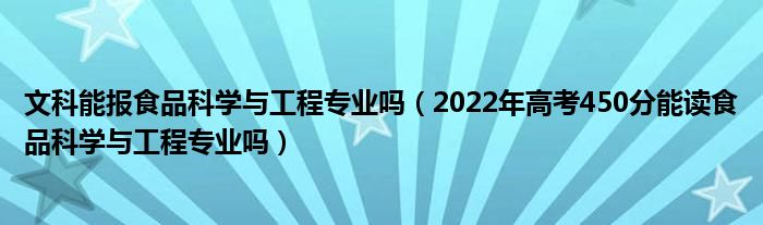 大家好,小高來為大家解答以上問題。文科能報食品科學與工程專業(yè)嗎,2022年高考450分能讀食品科學與工程專業(yè)嗎很多人還不知道,現(xiàn)在讓我們一起來看看吧!
