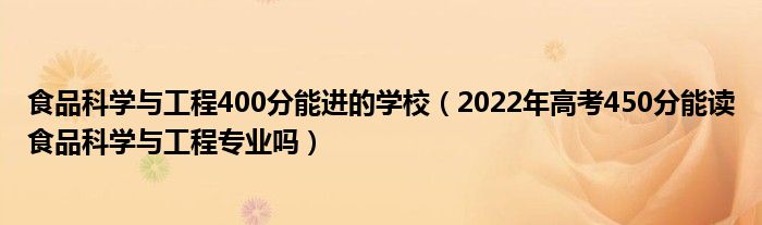 大家好,小高來為大家解答以上問題。食品科學與工程400分能進的學校,2022年高考450分能讀食品科學與工程專業(yè)嗎很多人還不知道,現(xiàn)在讓我們一起來看看吧!