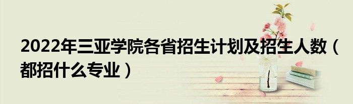大家好,小高來為大家解答以上問題。2022年三亞學院各省招生計劃及招生人數(shù),都招什么專業(yè)很多人還不知道,現(xiàn)在讓我們一起來看看吧!