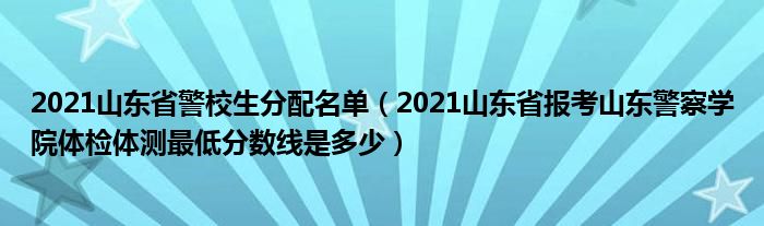 大家好,小高來為大家解答以上問題。2021山東省警校生分配名單,2021山東省報考山東警察學(xué)院體檢體測最低分?jǐn)?shù)線是多少很多人還不知道,現(xiàn)在讓我們一起來看看吧!